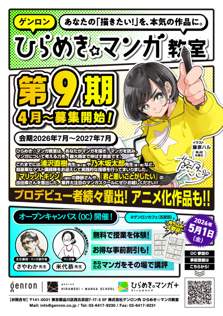 「ゲンロン ひらめき☆マンガ教室」第9期に向けたオープンキャンパスを《2026年5月1日(金)、15:00~》に開催いたします。