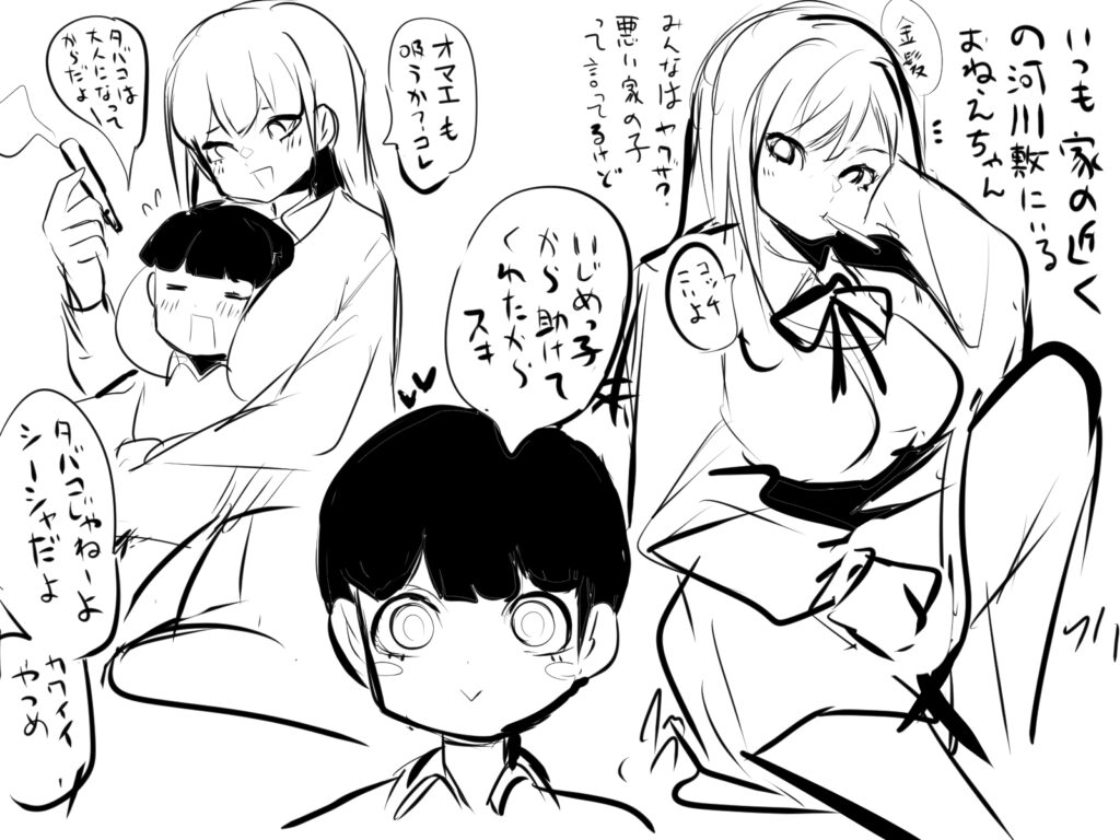 ☆企画を日々悩み続けておりましたがほんと難しい。「企画としての強さ」と「自分の強み/好みを活かす」両方のラインで考えてましたが、やはり単に新規性や企画の強さを考えようとすると行き詰まってしまい、結局自分のフェチである「おねショタ」「可愛い男の子」「女性上位」「クレイジー女の子」とかを軸に考えてみようと思いました。
